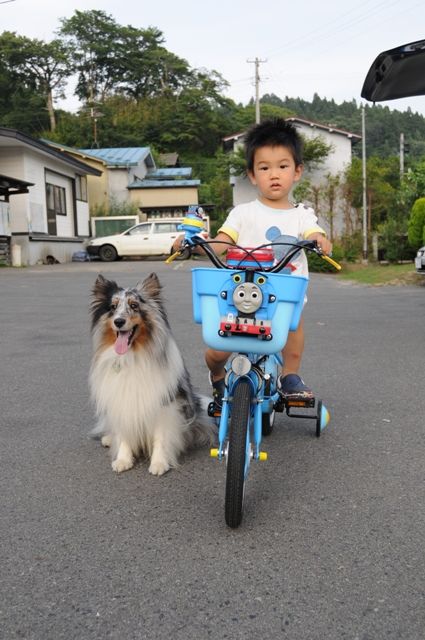 「トーマスのじてんしゃ!」と、見るたびに言っては、乗るっつー。