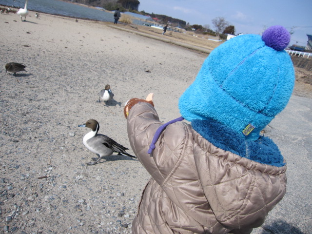 「お!」(はくちょうを指さす)