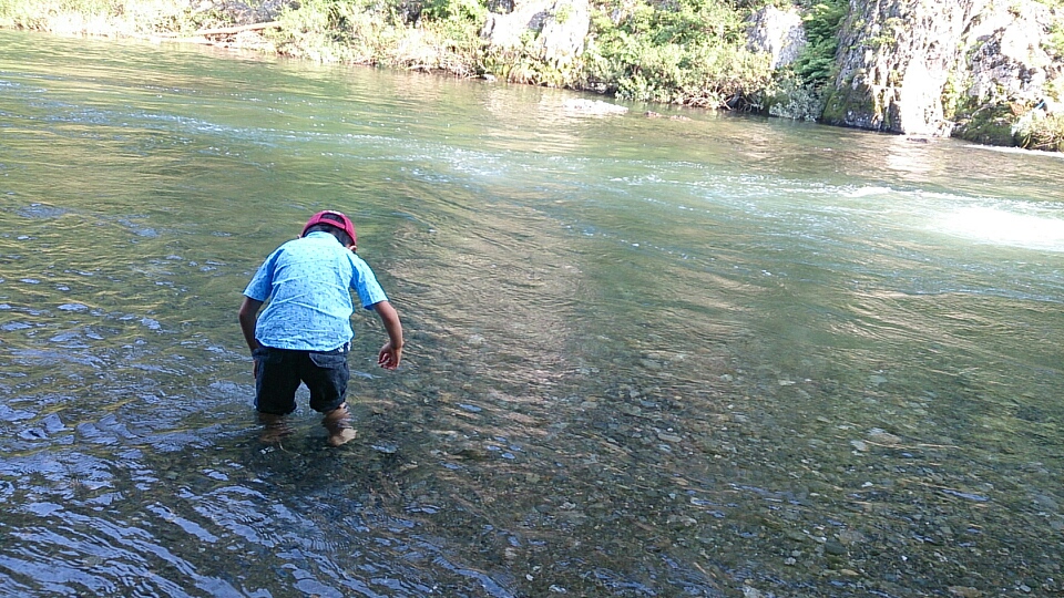 閉伊川沿いに盛岡から向かうのですが、川がきれいなのでいつも遊びます。