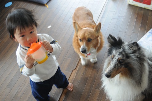 でも今日、ウケたのが、おーちゃんが戸棚から食器洗い機の洗剤を持っていって、ロイのところに持っていって見せていた。