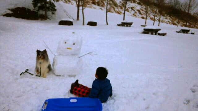 雪だるまを作ってロイを座らせパチリ。