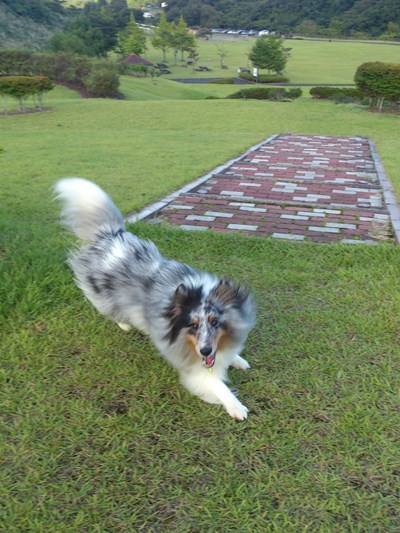 ノーリードにすれば私の周りをワンワンと吠えて走り回ったりジャンプしたりしてます。