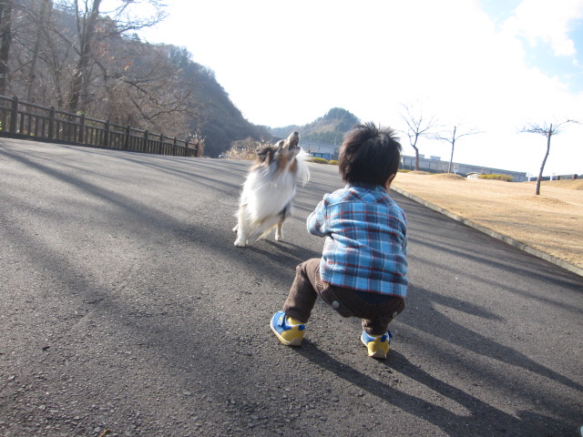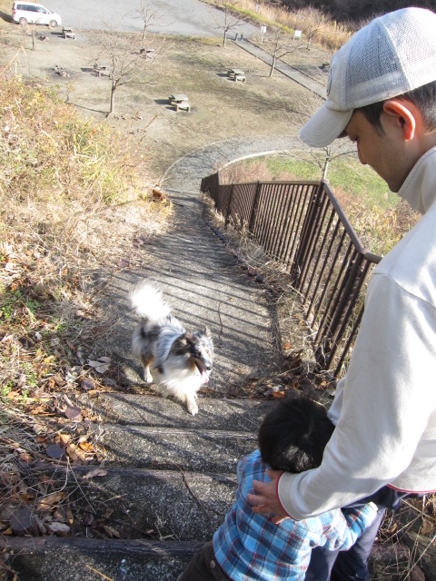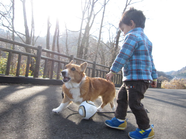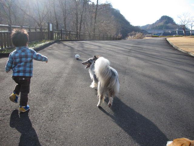 昨日の天気とはうってかわってマジいい天気! みんなで宮床ダムへ。 オレもサッカー(ガンボ) ロイはずーっと吠え&走っていた。 芝生広場ではアジではできない猛ダッシュをするロイ。 すごいスピードだ。 おーちゃんが持っているサッカーボールが欲しいロイ。 その後は階段の上り下りを3往復。 めんどくせー ロイのスタスタ階段上り下りがおもしろいおーちゃん。