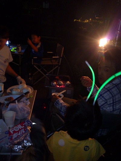 おーちゃん、もらった光るやつを頭につけ、バッタみたいって言われてました。