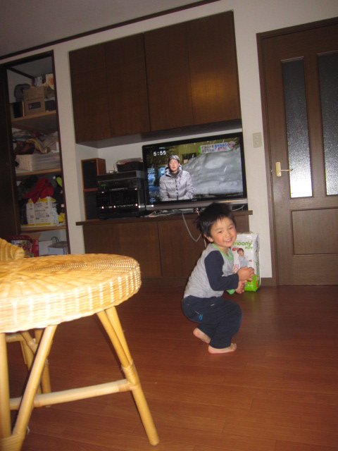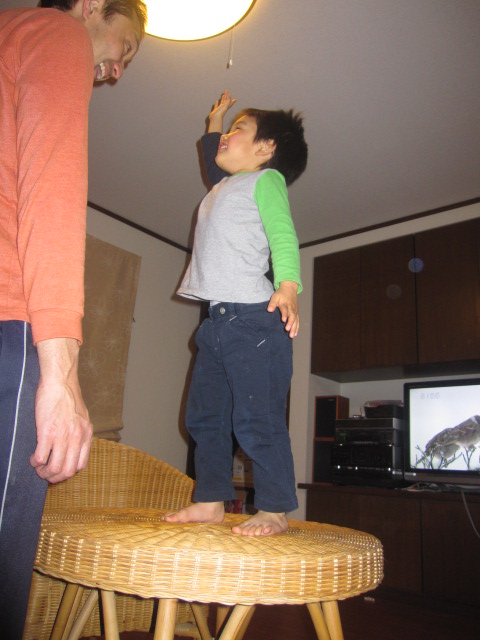 玄関に置いてあったテーブルをリビングに持ってきて、その上に登って、