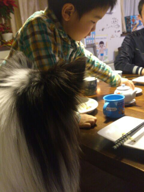 私は食卓でほとんど食べ物をあげないので私のところには滅多に来ませんが、ソナチチの隣によくいきます。