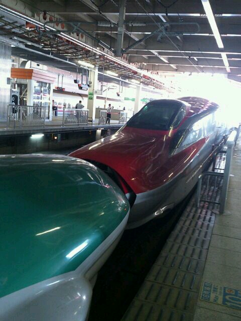 エスカレーターを登ると、東京方面からすぐ秋田新幹線のこまちがやってきました。