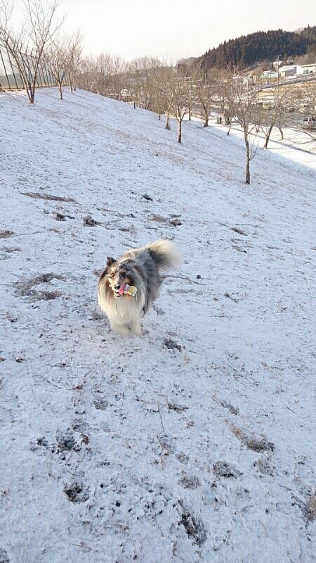 先月の二週連続の大雪の残りがやっと溶け、ロイの遊び場が解禁になりました。