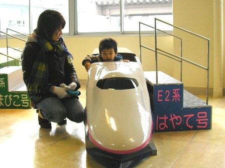 予約すれば新幹線車両基地の中を見学できるらしいが、平日の午前中から2時頃までだった気がするので我が家はそう簡単には行けない。