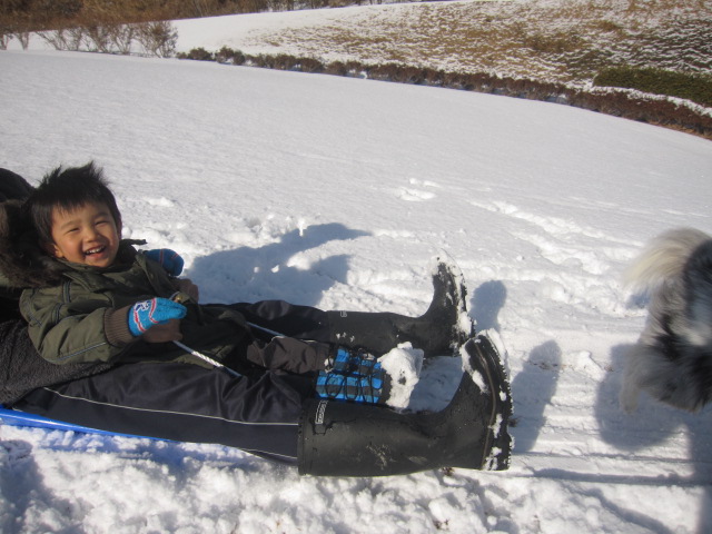 おーちゃんはビビリなので一人でソリのれませーん。