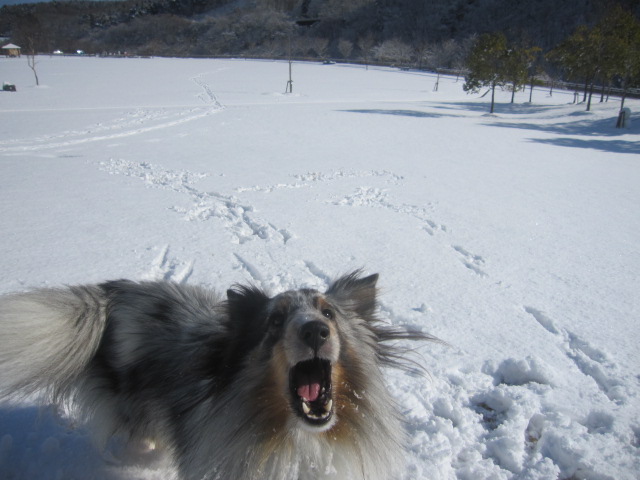 「雪玉投げろ!」と吠えてます。