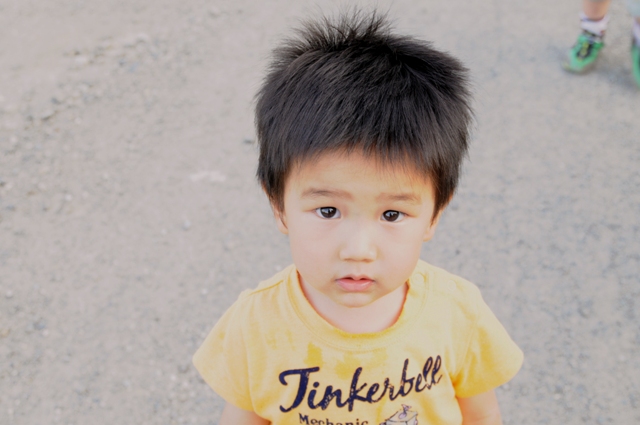 おーちゃんも保育園あつそうだよね~今日も汗べたべたで帰ってきた。