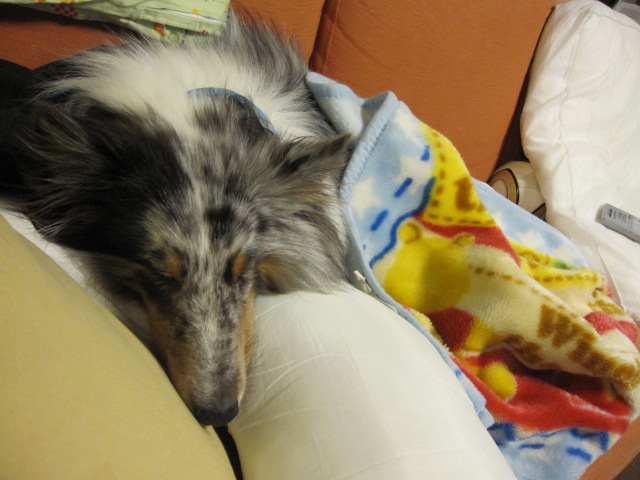 この毛布はロイが子犬の頃、我が家にきたときに犬舎の方があっちで使っていたものだと思うけど、荷物に入れて送ってくれたもの。