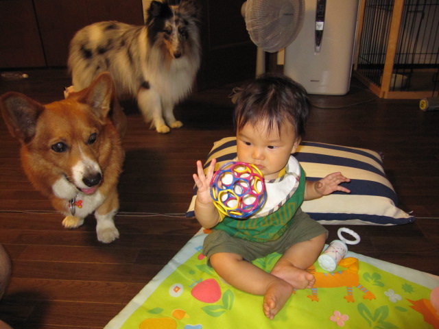 ロイのこともとっても好きなようで、二階で遊んでいるとロイを呼んでみたり、「おい、いないね」と言って私にロイを呼ぶようにアピール。