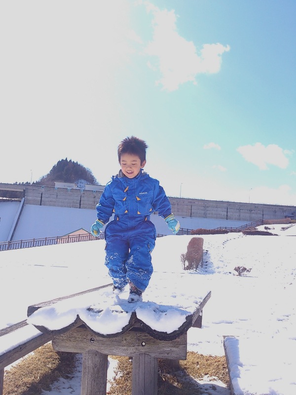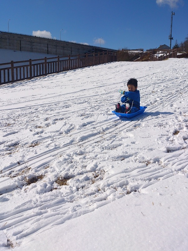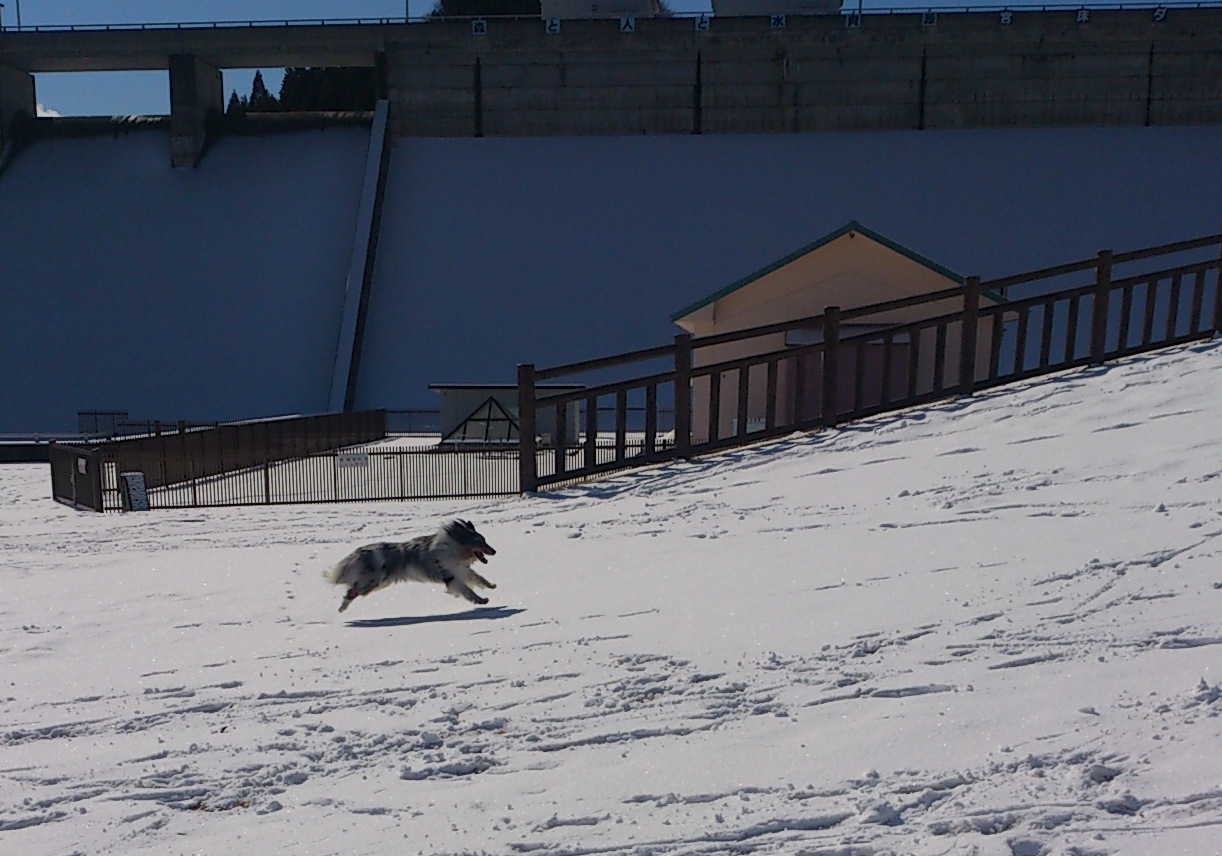 風もなく、気温も暖かかったのでさっそくいつものダム公園へ遊びに。