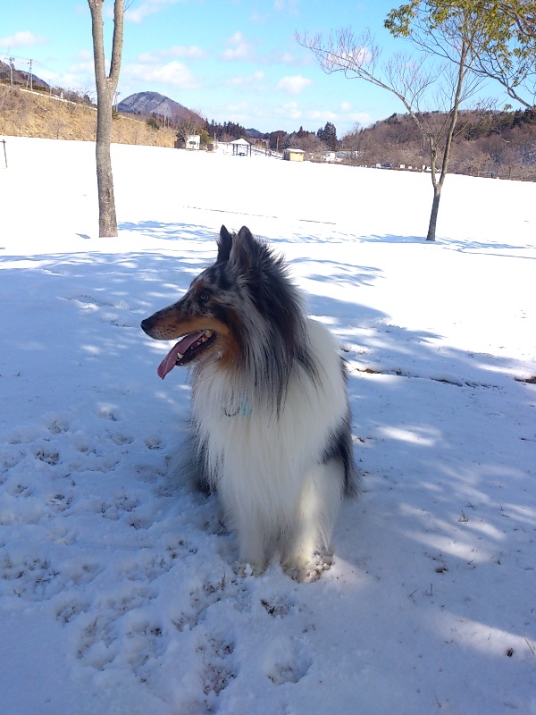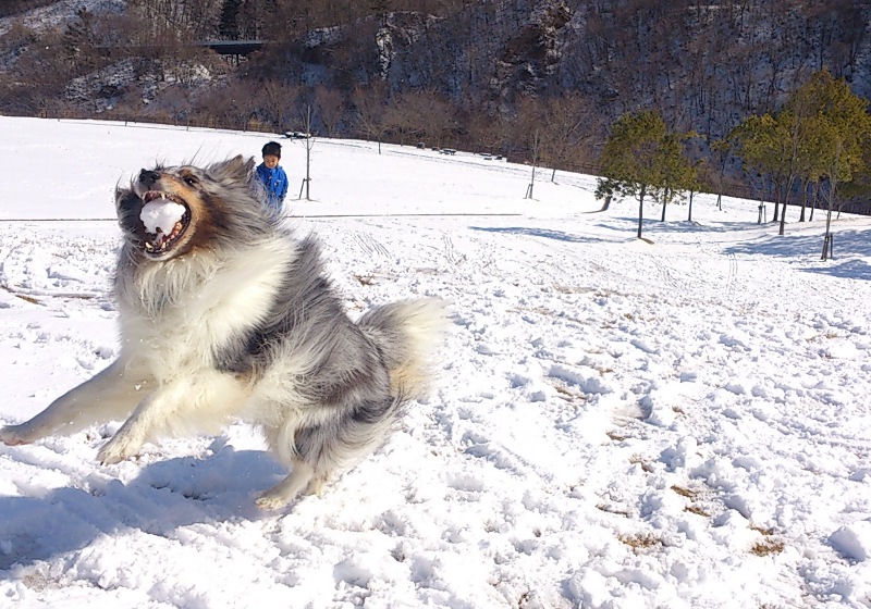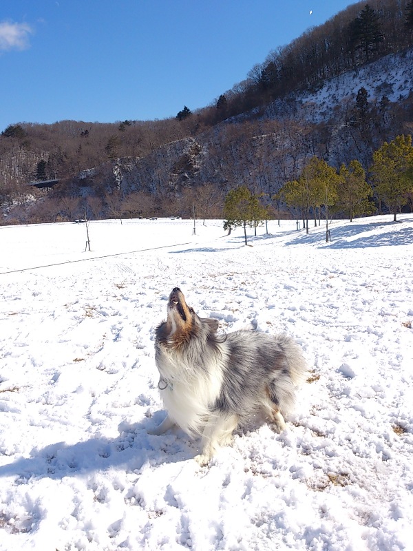 ガンボは雪投げして遊ぶと、口にくわえた雪は全部食べて、おしっこジャージャーになりましたが、ロイは全然食べないみたいですね。