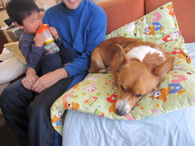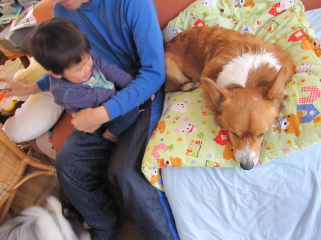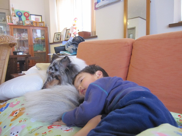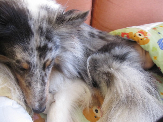 「シッポ~」といいながらロイを枕に。ってか、シッポを枕に。
