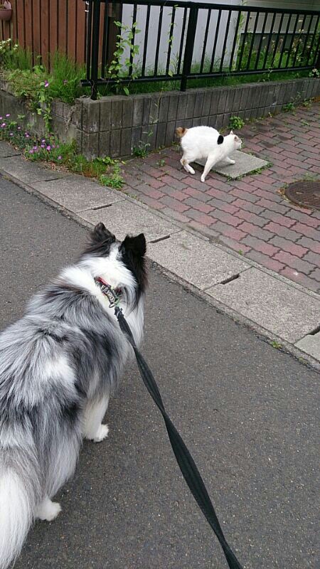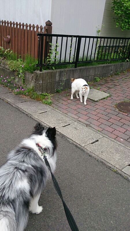 猫が逃げて行ってロイたんの勝ち。