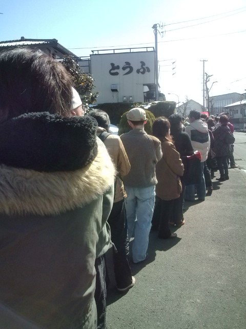 並んでいる間にお一人様2個が一個になり、油揚げがあったりなかったり、でも40分列んで木綿豆腐一丁、油揚げ二枚、豆乳、おからを購入。