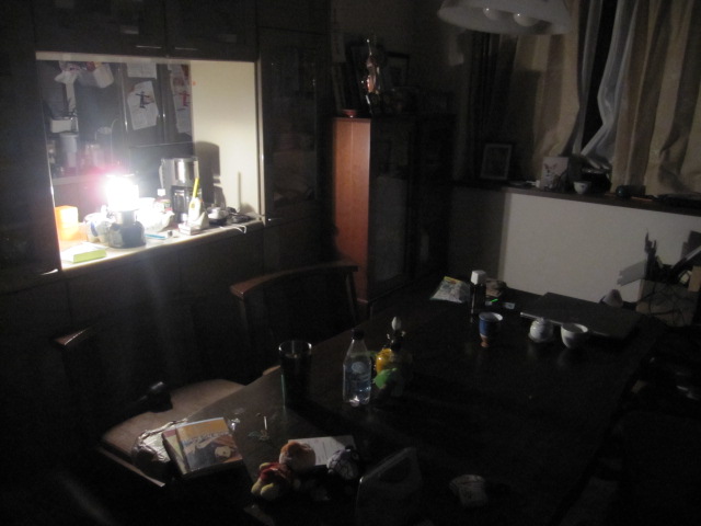 とりあえず車で寝る人も近所にはいたけど、うちはストーブもあるし、寝るときは消せばいいから一番被害がなかった2階の寝室で寝た。