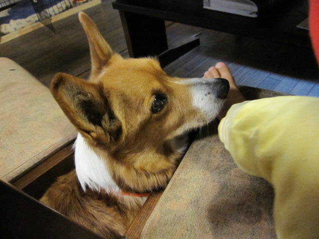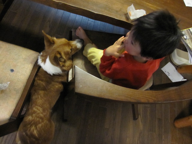 今日もおーちゃんのご飯をねらっております。