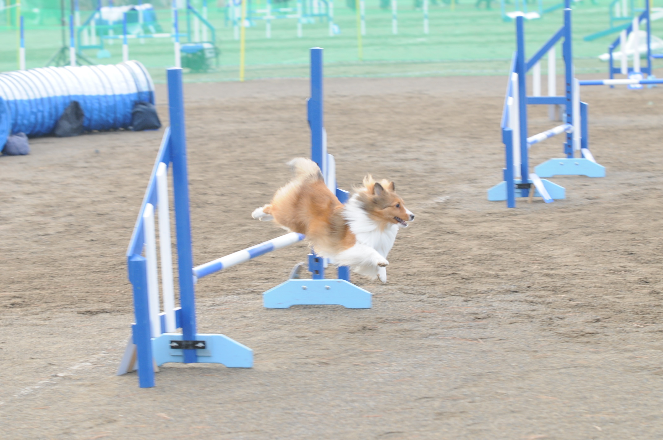 AGはハウスの下にトンネルの口が2つ開いてるパターンで、これは練習してなかったし、私も動きを読み切れず、Aを登るところをハウスに入ってしまって失格!